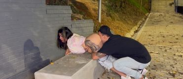 Since my husband left for work, he called my neighbor to give us some affection outdoors