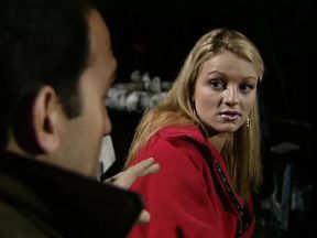 Hot bimbo gets face jizzed after sucking dick and getting pussy cock waxed in the bar